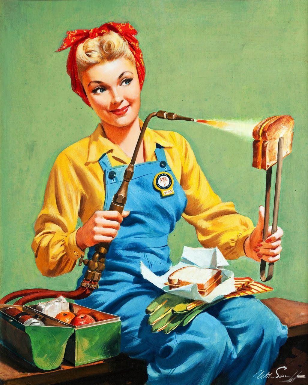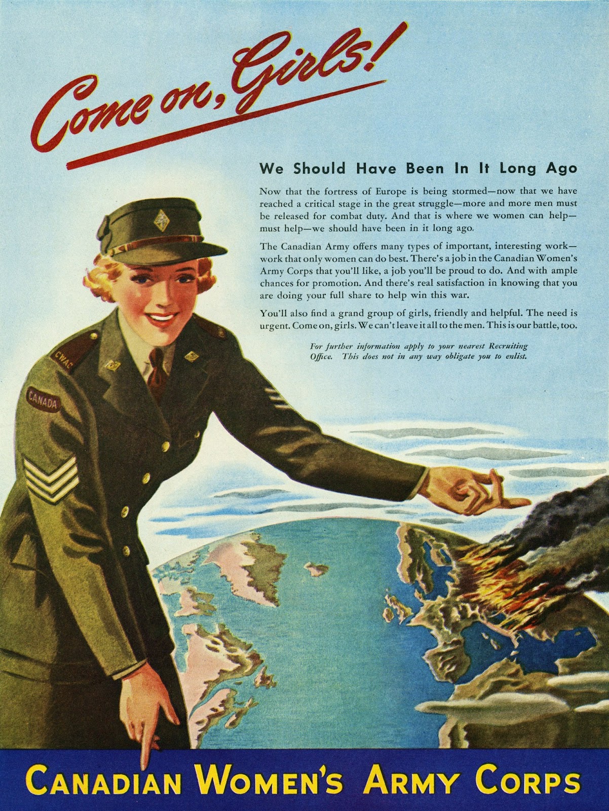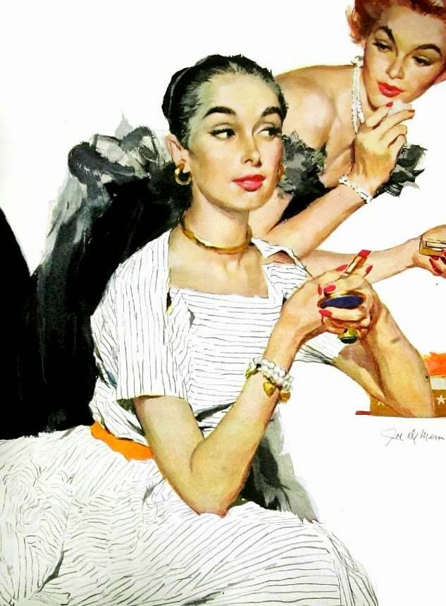 When you examine advertisements and commercial art from this time period (see my archives for ample examples) what you see is a focus on femininity as an essential part of the war-time economy. With the shortage of men in play, due to either economics or conscription, the reflected focus of femininity was in its strength, it's determination, it's power to endure hard times - all noble characteristics intrinsically attached to the feminine self-perception.